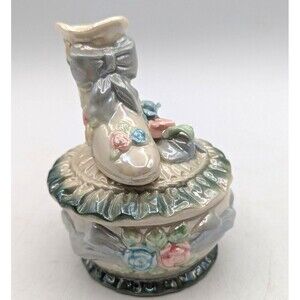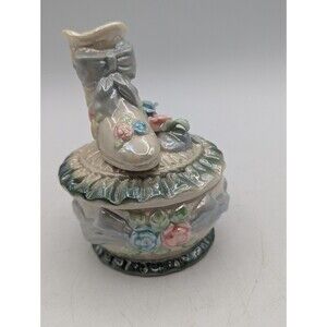Vintage Trinket Box Victorian Boot Floral Green Ring Box