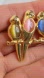 🦜 Vintage Triple Parrot Brooch – Gold Tone with Lucite Cabochons