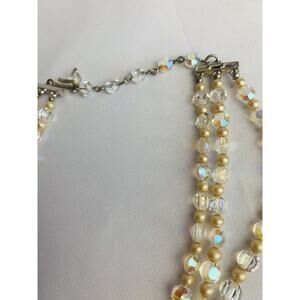 Vintage Triple Strand Acrylic Bead Necklace 14" Choker Hook Closure