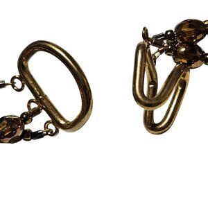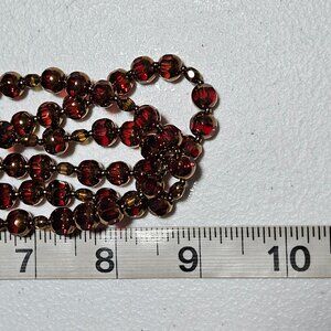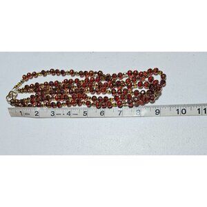 Vintage Triple Strand Red Gold Beaded Necklace Geometric Clasp Retro Fashion