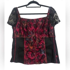 Vintage Tripp Black & Red Lace Corset Goth Gothic Floral Top