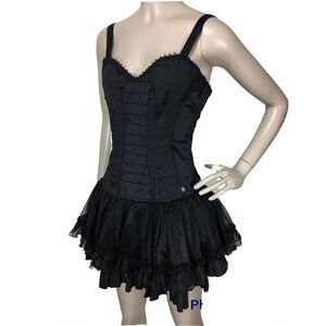 Vintage Tripp Gothic Punk Corset Bustier Tulle Tutu Ballerina Black Mini Dress