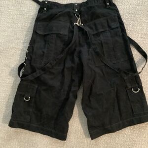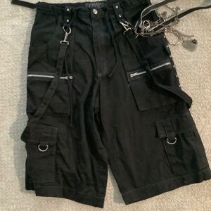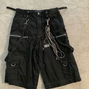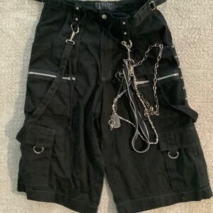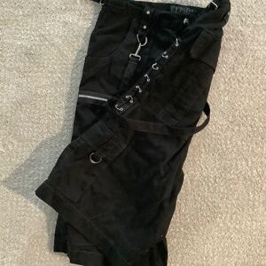Vintage Tripp NYC black pants, featuring dramatic chains, zip accents, and a sleek black silhouette. Worn just once and in excellent condition, they’re a rare find for fans of alternative streetwear.