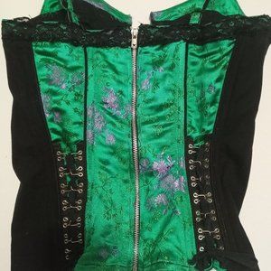 Vintage Tripp NYC Green Floral Brocade Corset - Goth