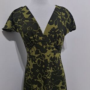 Vintage Trixxi Y2K Floral Print V- Neck Retro Fit & Flare Medium Sea Green