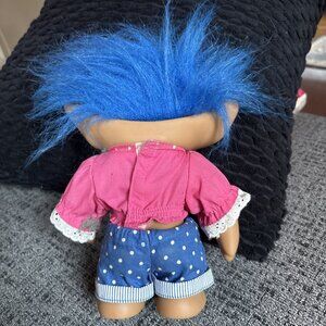 Vintage Troll Doll Set Of 5 With Blue Hair Pink Outfit & Assorted Styles