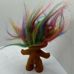 This adorable troll doll features vibrant rainbow hair, perfect for sparking creativity and fun. A delightful addition to any toy collection.
