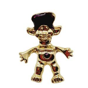 Vintage Troll Lapel Pin Gold Tone Purple Enamel Hair & Belly Tie Tack 7/8" Exc Cond