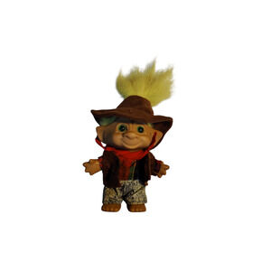 2. Vintage Farmer Troll doll with yellow hair and green eyes.