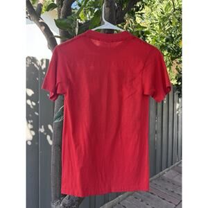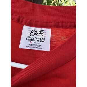 Step into bold vintage style with this 1986 Tropic Safari zebra graphic tee. Printed on a bright red Elite Sportswear Products Inc. 50/50 cotton-poly blend, this shirt features a striking zebra design framed by tropical leaves and a sunset backdrop, with “Tropic Safari – Philadelphia” across the front. The single-stitch construction and soft vintage feel make this a true collector’s piece. Perfect for lovers of graphic tees, safari/wildlife art, or standout vintage souvenirs. Excellent condition.