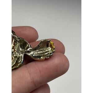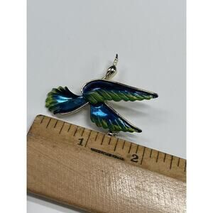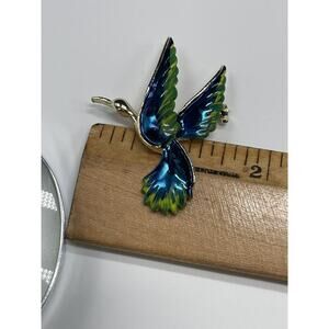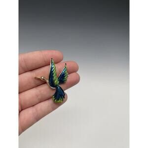 Vintage Tropical Bird Enamel Brooch Pin Gold -Tone Retro