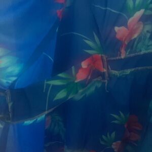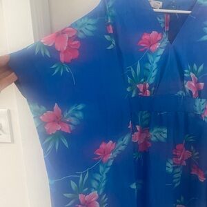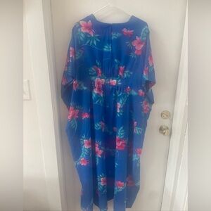 Vintage Tropical Hawaiian Muu Muu Kaftan Maxi Dress Blue Floral Kimono One Size