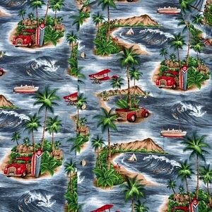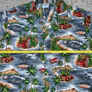 Vintage Hana Fashion Hawaiian short sleeve button down shirt. Made in Hawaii. 100% cotton. See measurements in photos.