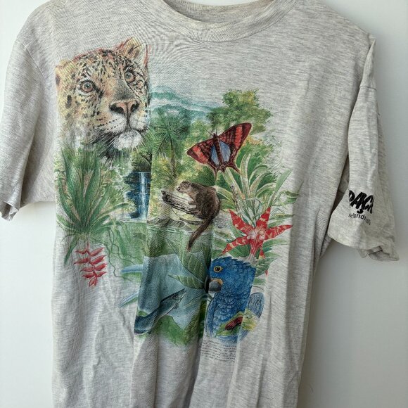 Such an awesome vintage shirt with tropical animals throughout. You don't want to miss this chance.