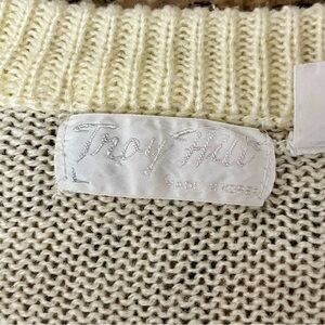 This vintage Troy Hill sweater vest is a classic piece with a cable-knit style, V-neckline, and solid beige color. Made from a combination of nylon, wool, and acrylic, it offers a lightweight and breathable feel, making it suitable for all seasons. The retro design with a touch of preppy and geeky charm makes it a versatile addition to any wardrobe, perfect for Christmas gatherings or outdoor activities like walking, rugby, tennis, and golf. This vest exudes a timeless and stylish look reminiscent of old money fashion from the 80s and 90s.