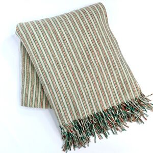 Vintage Troy Stipe Blanket Scarf Snuggler Tan Red Teal stripes 100% Wool