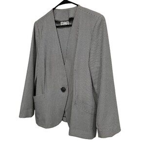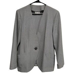 Vintage Troyne Houndstooth Pattern Blazer Black White Single Button Size Medium