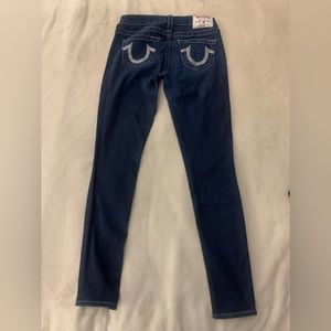 Vintage True Religion Dark Wash Denim Women Jean Rhinestone Super Skinny Size 27