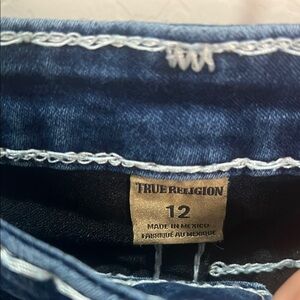 Vintage Y2K True Religion Jeans. Girls size 12. Also may fit women 24ish. See measurements in pics. True vintage. Been in my storage for years. Jeans in great shape. Some of the white stitching is pulled a little see in pixs. Very soft and stretchy.