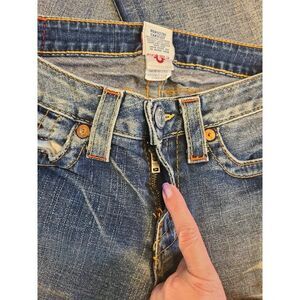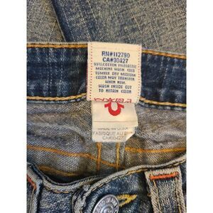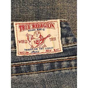 Vintage True Religion Women's Jeans Johnny | 28 | LOW-RISE Straight Leg | Excellent Used Vintage Condition | RN# 112790 CA# 30427 | MSRP $199 | Made in the USA | Manufacturer Distressing and whiskering | 5-Pocket Jeans | Belt loops