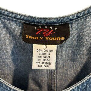 Vintage Truly Yours Denim Jumper Dress – Y2K 2000s Blue Cotton Size 10
