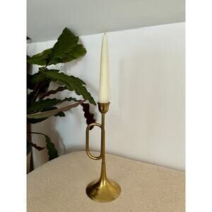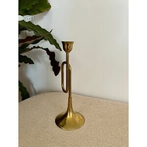 This is a great vintage brass candle holder in the shape of a trumpet horn. Candlestick will look amazing on a mantle or bookshelf. Great piece to add to your classic Christmas decor or to gift to a musician in your life. Piece is heavy and of excellent craftmanship. Made in India.