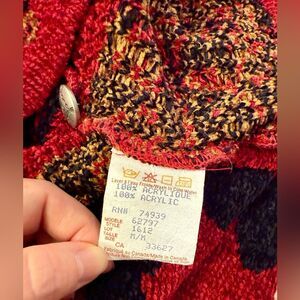 Vintage Tsunami Red Black Abstract Patterned Button Up Cardigan Sweater Size M