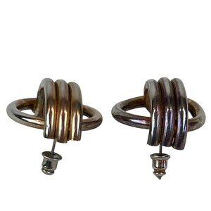 Vintage Tube Earrings Round Design Gold Silver Tone 80s Geometric