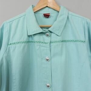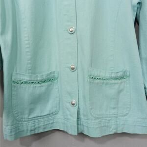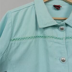 Vintage Tudor Court Robins Egg Aqua Blue Denim Jacket Size L Button Up Shacket
