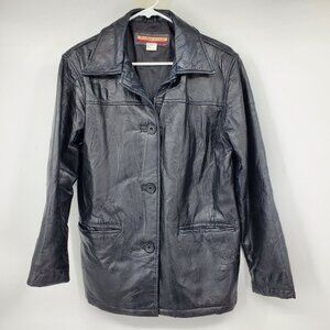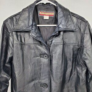 Vintage Tudor Court Stitched Black Button Up Y2K Collared Leather Jacket Small