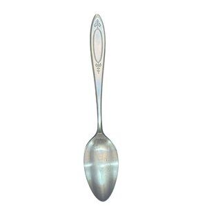 This silverplate teaspoon carries a whisper of bygone eras, its ornate handle design and gentle patina telling tales of elegant gatherings and timeless charm.