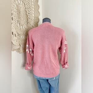 Vintage Tulip Floral Grandma Pink and White Crew Neck Sweater Size Medium