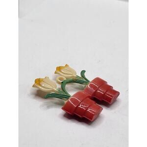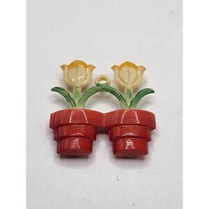 Vintage Tulip Flowerpot Pendant Charm Yellow Flowers Retro Plastic 1.5 Inch