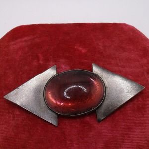 Vintage sterling silver Tulla Booth modernist brooch with purple center stone. 3.75"x2"