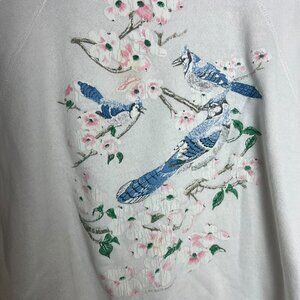 Vintage Tultex Women's M Blue Jay Print Crewneck Sweatshirt Floral Grannycore