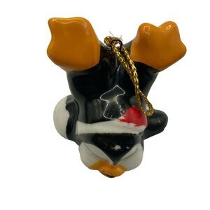 Vintage Tumbling Penguin Christmas Ornament Black and White Small Porcelain
