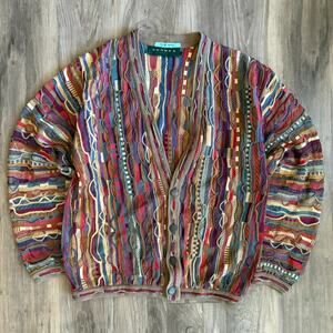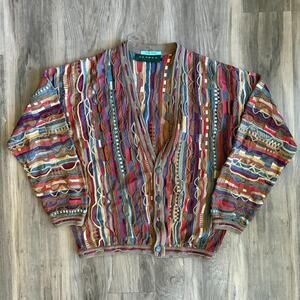 Vintage Tundra Canada Coogi Style Cardigan Sweater Men's Size S 3D Knit