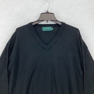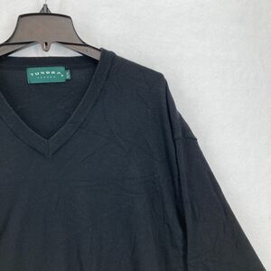 Vintage Tundra Canada Merino Wool Sweater Mens XL Black V Neck Long Sleeve Knit
