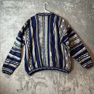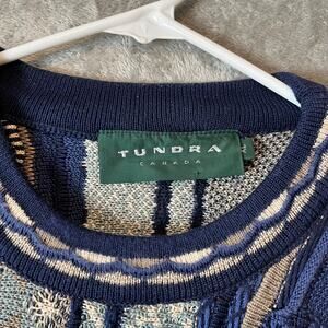 Vintage Tundra Chunky Knit 3D Pattern Sweater Size XL Blue Cotton