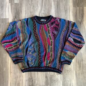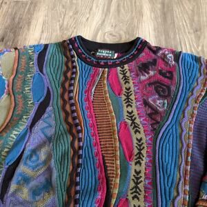 Vintage Tundra For Bachrach Multi Colored Textured Coogi Style Sweater Size M