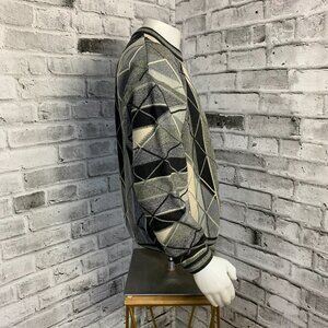 This vintage 80s 90s Tundra sweater is a grunge-inspired piece perfect for a retro 90s look. Made from a blend of polyester and cotton in chunky-knit style, it features a colorful geometric pattern and a relaxed fit with a crew neck. Ideal for casual wear or for adding a touch of hipster flair to your outfit, this pullover sweater is a versatile and stylish addition to any wardrobe. With its unique blend of Biggie Cosby and grandpa-inspired character, this sweater is sure to stand out and make a statement.