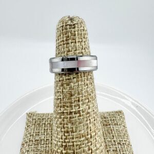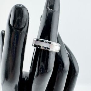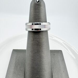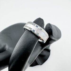 Vintage Tungsten & Mother of Pearl Inlay Band Ring Timeless Elegance Modern