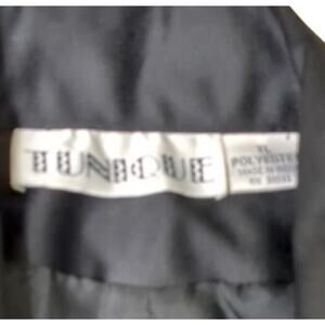 Vintage Tunique Women's Jacket Satin Embroidered Palm Trees Black Size XL Shoulder Pads