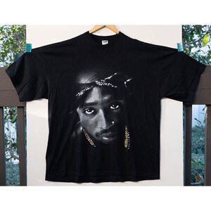 Vintage Tupac Shakur Big Face Bling Necklace Hip Hop Rap T-Shirt 3XL