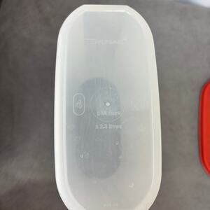 Excellent preowned condition vintage Tupperware container with orange lid. Very clean.