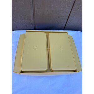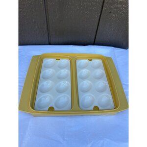 Vintage Tupperware 4 piece Set Deviled Egg Keeper Tray Carrier Lid Harvest Gold