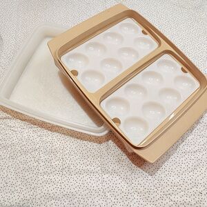 Vintage Tupperware 723-2 Tan Deviled Egg Storage Container Keeper Holds 16