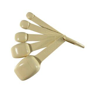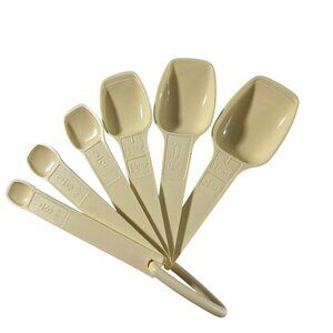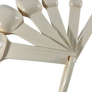 Vintage Tupperware Almond Measuring Spoons Set of 6 on Ring