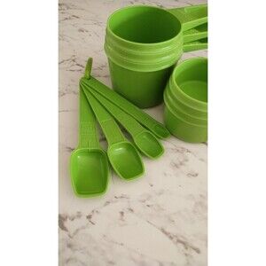 Vintage Tupperware Apple Green Nesting Measuring Cups & Measuring Spoons Retro