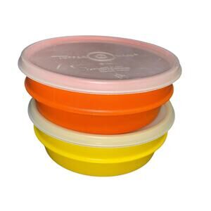 Vintage Tupperware Cereal Bowls Lids 1356 Harvest Fall Orange Stackable Bowl Sheer Lid 238